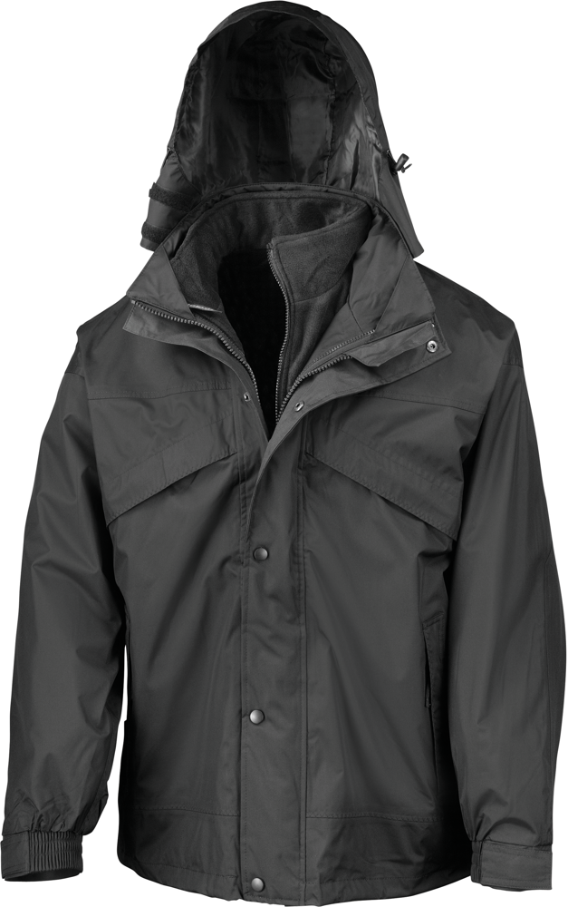Buitenjas: 100% StormDri 4000 (230g) polyester met PVC coating. Voering boven in 100% polyester. Volledig waterdicht door tweevoudige getapete naden. Windproof. Capuchon in de kraag met kinbeschermer en aanrijgkoord. Hoge kraag met volledige ritssluiting. Zip en Clip systeem om de jassen aan elkaar te maken. Tweezijdige rits met stormoverslag met drukknopen. Eyelets onder de armen ter verluchting. 2 ruime zij- en borstzakken. Elastische mouwuiteinden met klittenbandsluiting. Aanrijgkoord onderaan. Kreukelvrije stof. Binnenjas: 100% anti-pilling polyester fleece 280 g/m² . 2 ruime zijzakken. Volledige ritssluiting. Elastische mouwuiteinden.