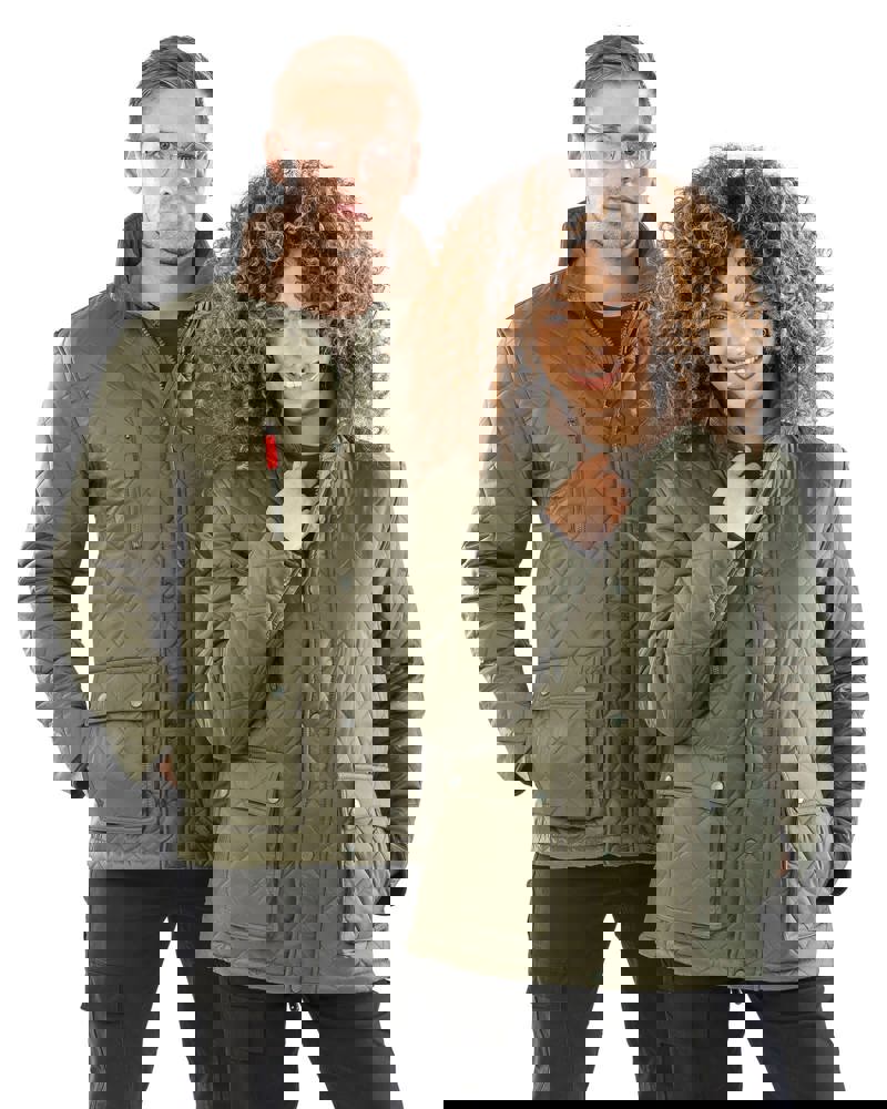 Buitenkant: 100% nylon met polyacryl coating, wattering in een ruitvormig motief 2x2cm. Binnenkant gevoerd met 100% polyester en 100% polyester fleece. Kraag in velour rib. Zware tweerichting ritssluiting. Waterafstoten en winddicht. Stormoverslag met drukknopen. 2 voorzakken met drukknopen en 1 zak met ritssluiting. 2 openingen met drukknopen op de achterkant.