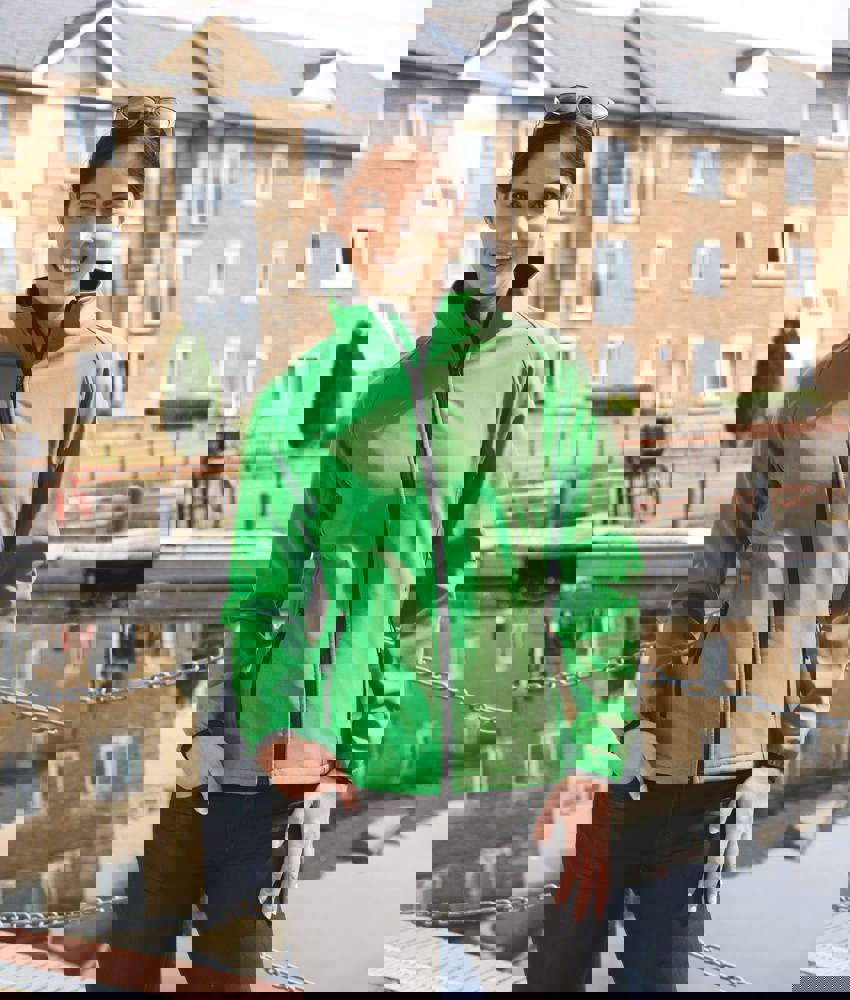 Tweelaagse functionele stof. Buitenkant: 100% polyester. Binnenkant: 100% polyester microfleece. Beschermt tegen lichte regen, ademend en is winddicht. Decoratieve overstiksels. Volledige ritssluiting. Zijzakken met YKK ritssluiting. Kinbeschermer. Getailleerde snit. Elastische mouwuiteinden. Neutraal label. Wassen op 60 °C.