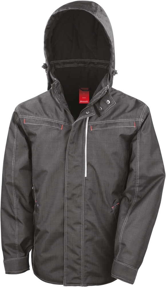 Parka buitenzijde 100% polyester 170g/m², gedeeltelijk gevoerd in 100% polyesterfleece, met vulling 230 g/m². Parka-windbreaker, waterdicht 3000 mm met thermogelaste naden en ademend 2000 g/m²/24 u. Polartherm fleecevoering. Ritssluiting in 2 richtingen met meegeleverde, verwisselbare gekleurde schuivers. 4 ritszakken aan de buitenkant en 2 ritszakken aan de binnenkant. D-vormige ring in de borstzak links. Opstaande kraag en afneembare capuchon. Langer rugpand, verstelbaar aan de onderkant. Regelbare mouwuiteinden met klittenband. Stormoverslag met drukknopen. Contrasterende en versterkte naden en reflecterende details. Ophanglusje in de kraag genaaid.