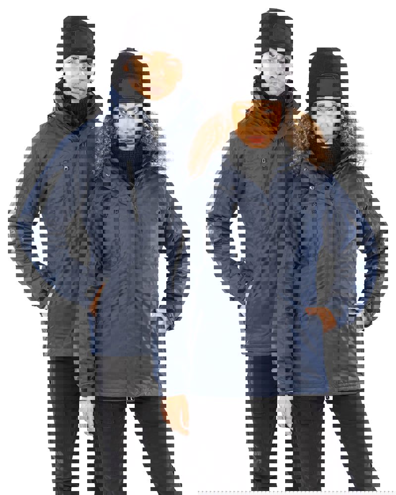 Buitenjas 100% ripstoppolyester met een voering van 100% polyester, windbreaker, waterdicht 3000 mm en ademend 3000 g/m²/24 u. Getapete naden. Binnenjas 100% softshell-polyester 2 lagen (280 g/m²), met een ritssysteem vastgemaakt aan de buitenjas. Buitenjas: Ritssluiting met dubbele schuiver. Dubbele stormoverslag met drukknopen. 2 zijzakken en 1 borstzak met ritsen. Elastische mouwuiteinden met klittenbandsluiting. Gevoerde, afneembare en aanpasbare capuchon met reflecterend detail bovenaan. De onderzijde van de jas is regelbaar met aanrijgkoordjes. Binnenkraag in ribboord. Binnenjas Softshell: Ritssluiting over de hele lengte. 2 zijzakken en 1 binnenzak. Zoomafwerking aan de mouwen.