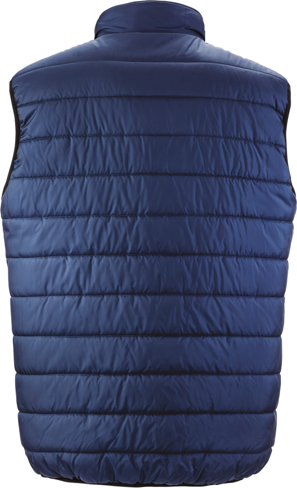 Buitenzijde: 100% twillpolyester met mechanische stretch / TPU-laag. Binnenvoering: 100% polyester. Vulling: 100% polyester. Opstaande kraag en ritszakken. Heel zichtbare voorkant: reflecterende stroken op de body. Achterkant: effen met afwerkingen in kleur Navy. Soepel biesje aan de mouwopeningen en op de taille. Eenvoudig op te bergen en compact. Geen merklabel, voor eenvoudige personalisatie. EN ISO 20471:2013+A1 Class 2/RIS-3279-TOM (orange only)