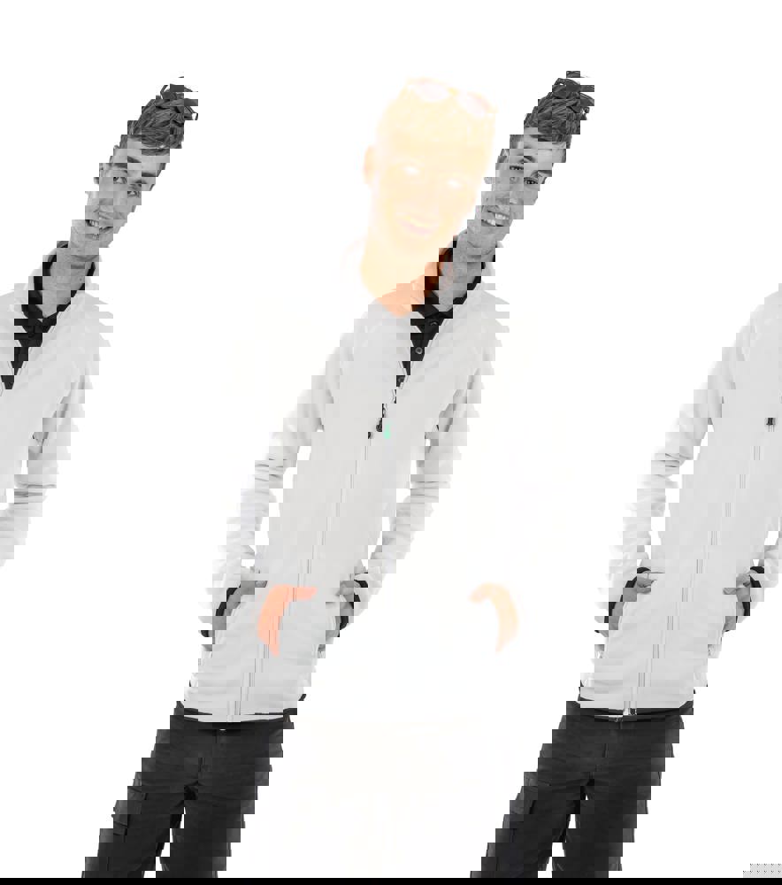 100% polyester. 100% gerecycled polyester. Duurzaam kwaliteitsgaren. Gemaakt van petflessen. Ecologische YKK NATULON® ritssluiting vooraan. Ophanglus. Mooie sierstiksels op het lichaam. Ritszakken aan de zijkant met fleecevoering. Omboorde en zachte manchetten en tailleband. Dichte vezels. Vochtafdrijvend en sneldrogend.