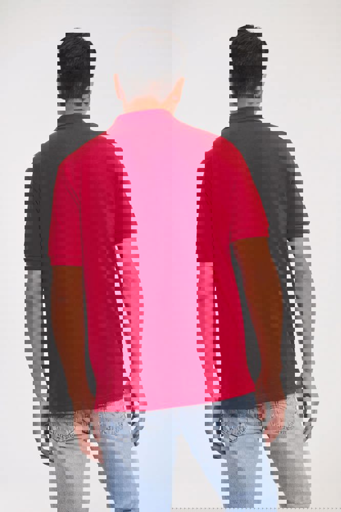 100% ringgesponnen katoen (Light Oxford: 93% ringgesponnen katoen / 7% polyester). Piqué. Nektape. Zijsplitjes. Versterkte schoudernaden. Kraag en mouwuiteinden in 1x1 rib. Knooplijst met 2 knopen. Reserveknoop.