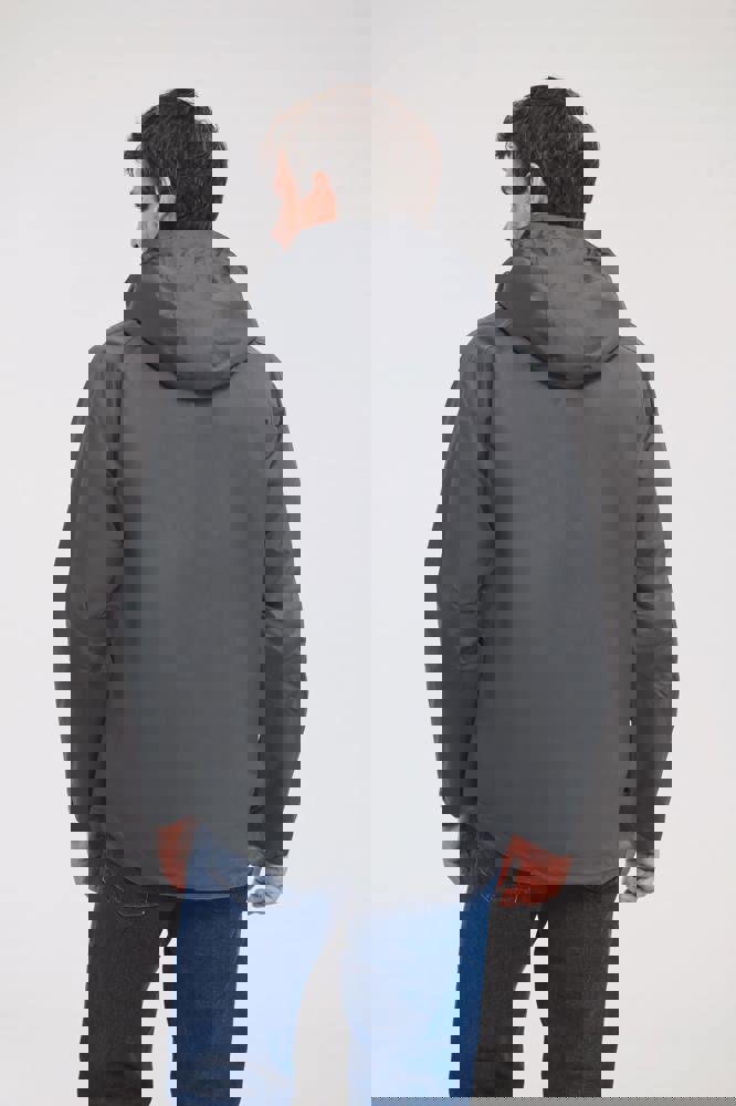100% nylon taslan. Waterdicht t/m 2.000 mm (PU-coating) en ademed t/m g/m²/24. Waterafstotende coating en getapete naden. Ergonomische snit met extra ruimte voor de ellebogen en raglan mouwen. Drie-laagse capuchon kan opgeborgen worden in de kraag, kraag gevoerd. Volledige YKK® ritssluiting met ritstrekker, dubbele stormoverslag met klittenbandsluiting. Zijzakken met warme voering en ritssluiting, binnenzak voor MP3/GSM en borstzak met ritssluiting, allen met ritstrekker. Volledig gevoerd in mesh met een discrete drukkersits aan de achterkant. Elastisch aanrijgkoord onderaan de jas.