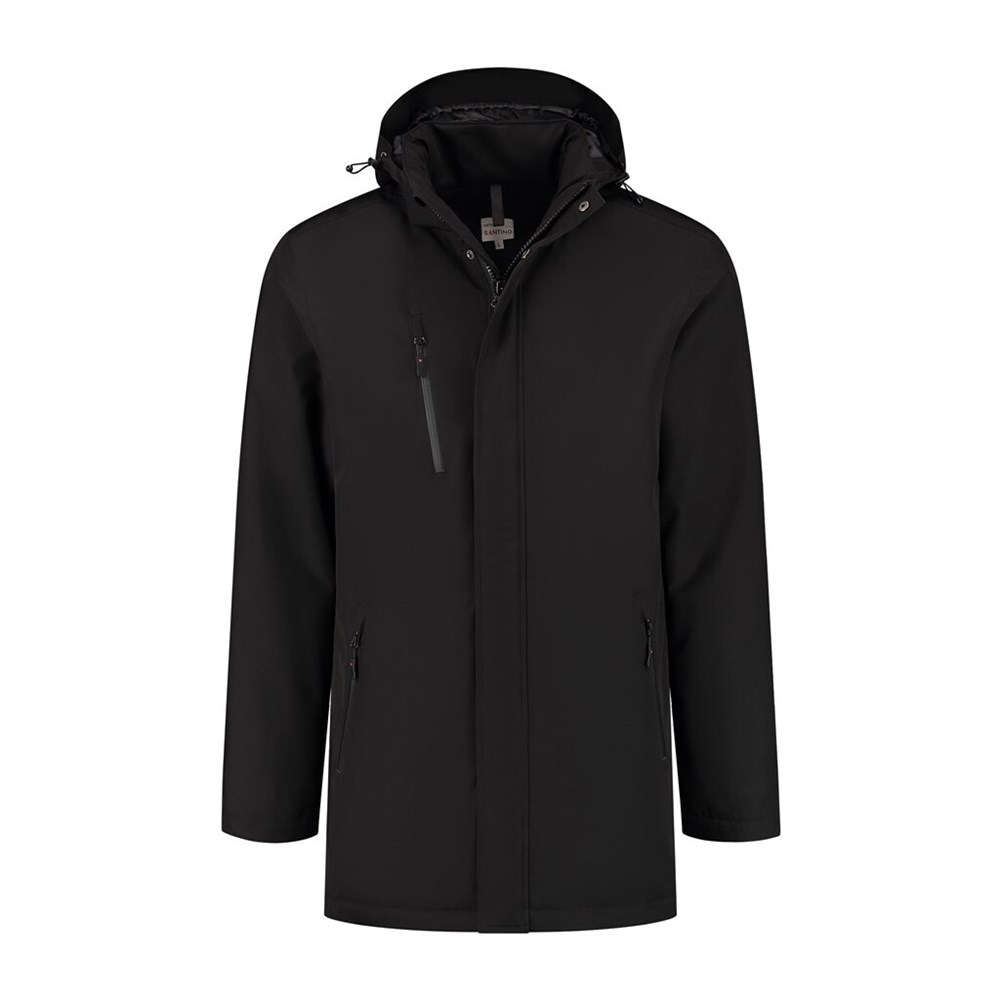 Parka, 100% polyester, 180 gr/m2, gevoerde parka met afneembare en verstelbare capuchon, gewatteerd, stof is gecoated en daardoor winddicht, waterdicht 5000 mm waterkolom en ademend 5000 gr/m2/24h. Opstaande kraag met voorsluiting 2-way YKK rits, borstzak en voorzakken met waterafstotende YKK ritsen. Mouw met windstopper, 1 binnen borstzak, 2 binnen heupzakken en een printrits aan de binnenzijde. Alle naden aan de binnenkant zijn waterdicht getaped.