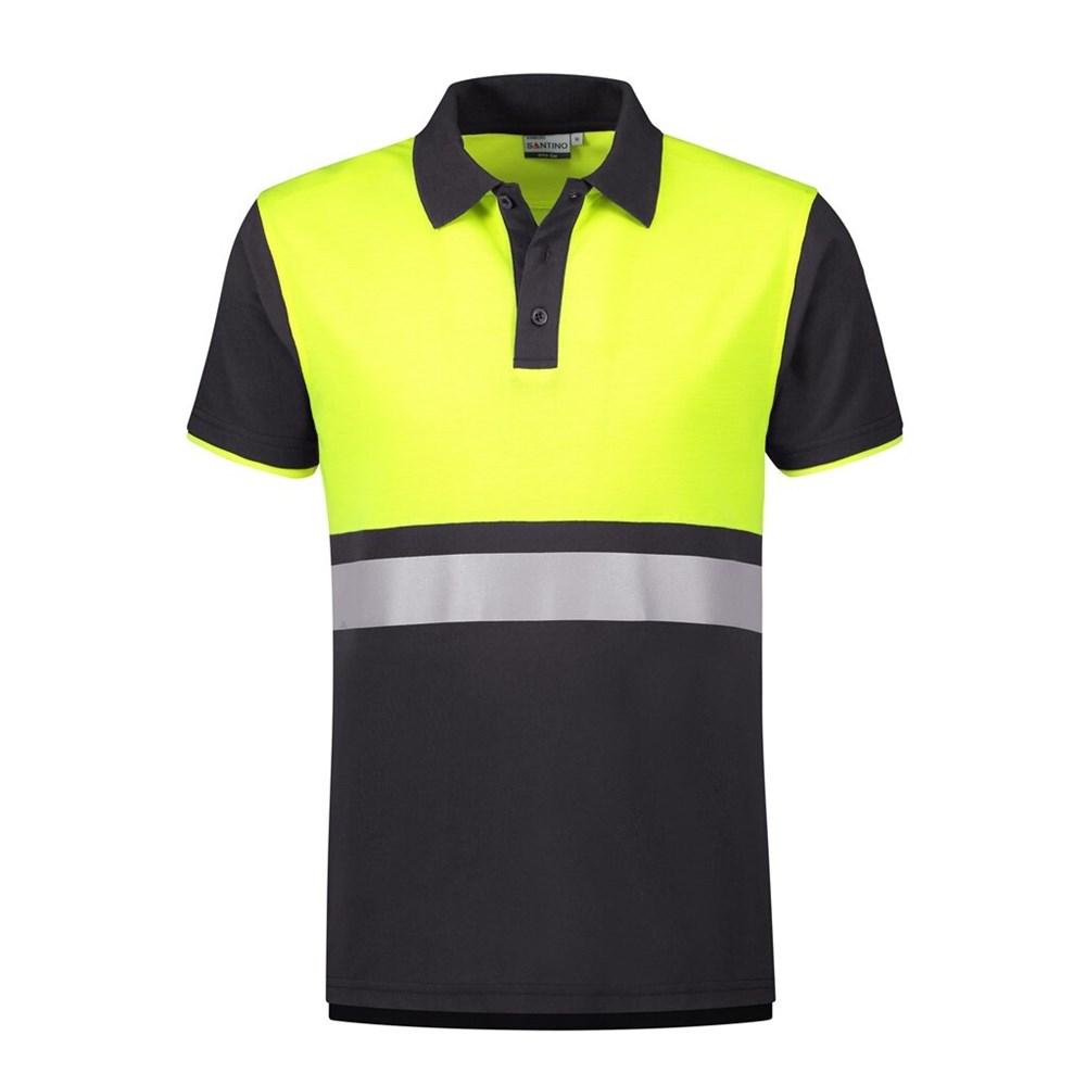 Poloshirt, 70% polyester / 30% katoen, 220 gr/m², piqué, regular fit met polokraag, 3-knoopsluiting, splitjes in zijnaad, verlengd achterpand en geel fluoriserend bovenstuk met getransfereerd 3M zilver reflectie tape.