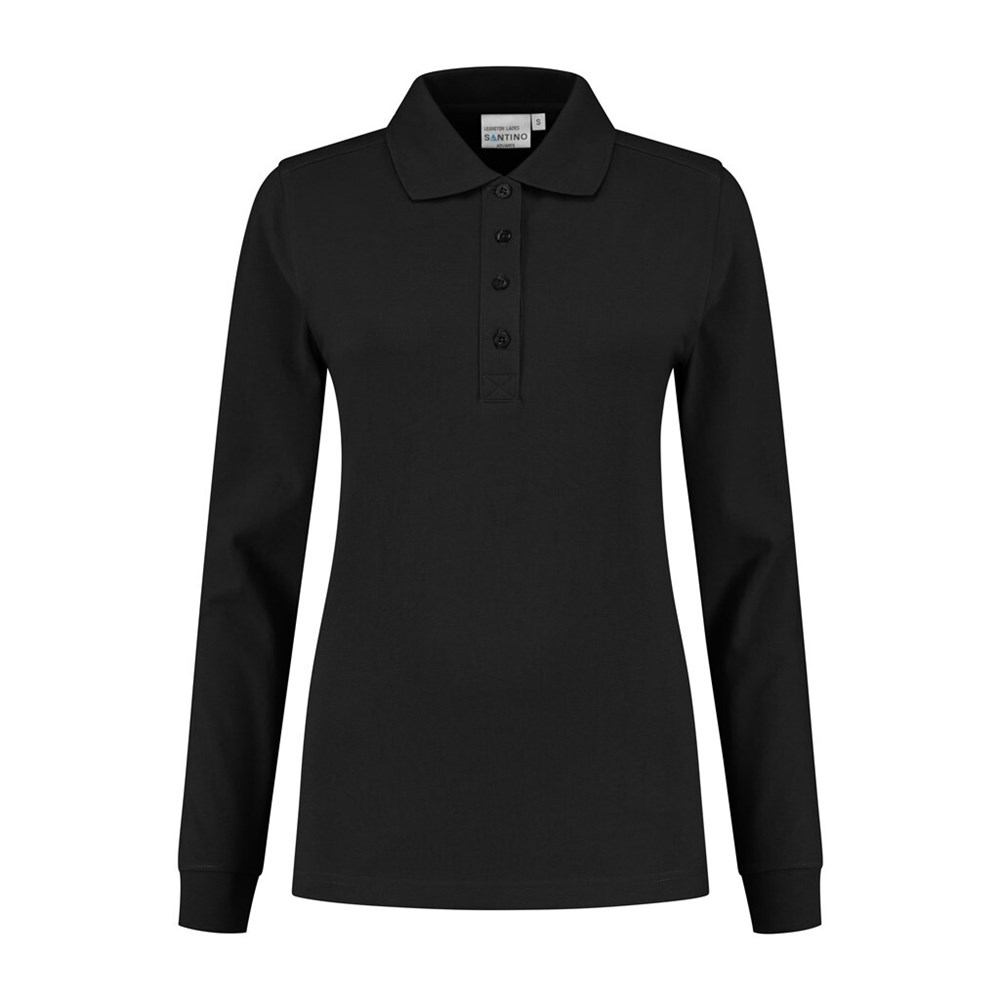 Poloshirt met lange mouw, 50% polyester / 50% lange vezel katoen, 220 gr/m², pique, ladies fit met polo-ribkraag, en 4-knoopsluiting, lange mouw met ribmanchet, 1x1 ribboord, splitjes in zijnaad, schouders voorzien van een dubbele laag stof voor extra versteviging, halve maan en anti-microbiële afwerking. (Sport grey is melange: 85% gekamd katoen / 15% viscose).