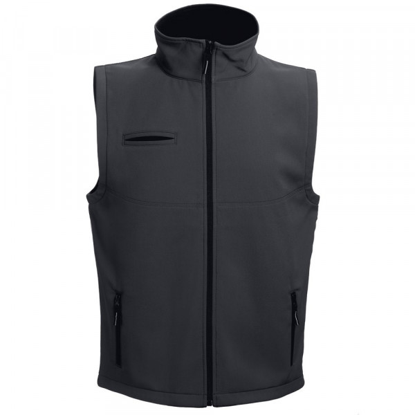 Unisex softshellvest van 96% polyester en 4% elastaan ​​met twee lagen (280 g/m²). Waterafstotend vest met een ruglengte langer dan de voorkant. Bevat drie zakken, twee zijvakken met ritssluiting en een dubbele paspelzak op de borst. Personaliseerbaar gebied met gemakkelijke toegang. Maten: S, M, L, XL, XXL, 3XL
