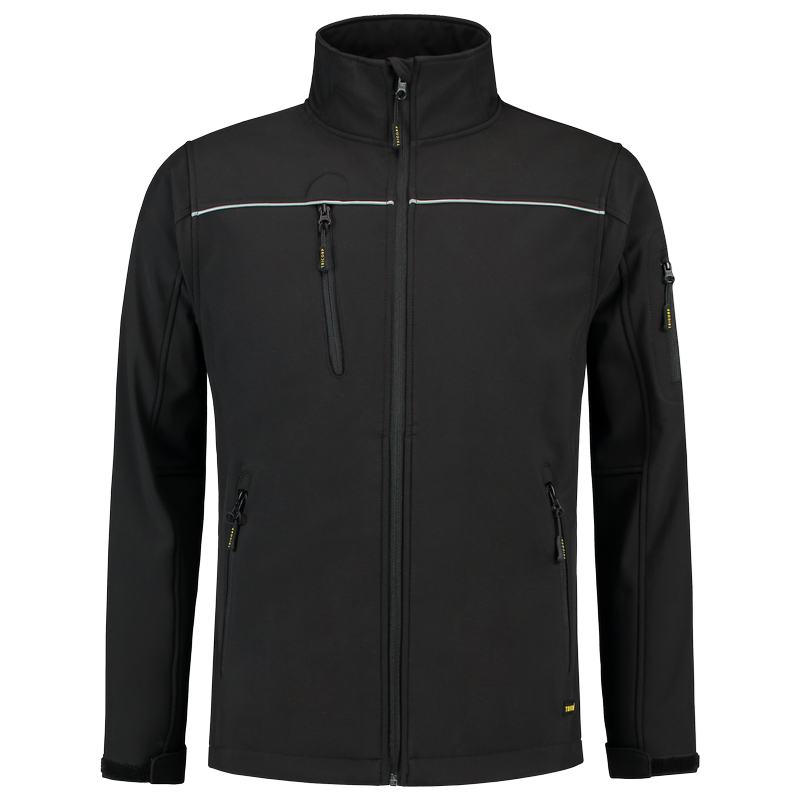 Een softshell is een soepele, comfortabele jas die ook waterafstotend en winddicht is. Het materiaal is gemaakt van een gewoven polyester. Het gebruik van een PU tussenlaag zorgt ervoor dat het ademend vermogen optimaal blijft en je dus niet gaat zweten. De rekbare stof zorgt ervoor dat je je bewegingsvrijheid behoudt. De softshell bevat stretch voor extra draagcomfort. Tevens is de jas beter zichtbaar door de reflectiepiping op de borst. Dit kledingstuk is voorzien van een gelamineerde rits voor een luxe uitstraling. De onderzijde van de jas is middels een elastisch koord met stoppers te verstellen en de manchetten zijn door middel van klittenband te verstellen. De Softshell is aan de voorzijde voorzien van 4 zakken en biedt daardoor veel opbergmogelijkheden. Ook heeft deze jas een binnenzak welke gebruikt kan worden voor het opbergen van de telefoon. Om doorbloeden te voorkomen raden wij aan om alleen druktechnieken te gebruiken die geschikt zijn voor softshell stoffen.