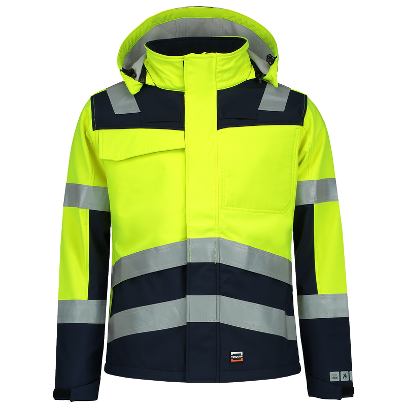 De Softshell Multinorm Bicolor uit de Tricorp Safety collectie is vervaardigd uit 60% modacryl, 38% Polyester en 2% carbon met een doekgewicht van 350 gr/m2. Dit product is EN ISO 11612 (bescherming tegen hitte en vlammen) en EN 1149 (bescherming tegen elektrostatische eigenschappen) gecertificeerd. Daarnaast heeft dit kledingstuk een hogezichtbaarheid bij dag schemer en nacht door de EN ISO 20471 certificering. Om doorbloeden te voorkomen raden wij aan om alleen druktechnieken te gebruiken die geschikt zijn voor softshell stoffen.