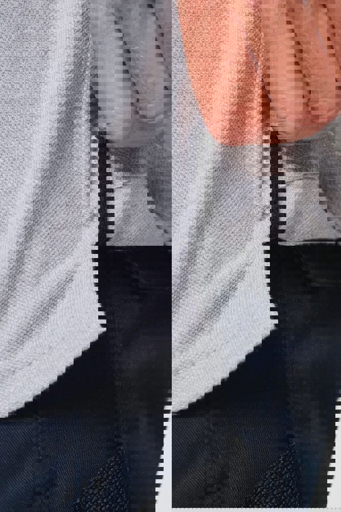 65% polyester / 35% katoen. Gekamd katoen piquétricot. Wasbaar op 60 °C. Anti-pluisbehandeling. Lijst met 3 knopen en contrasterende bies aan de binnenkant. Kraag in ribboord met nektape aan de binnenkant. Contrasterende bies aan binnenkant kraag en schouders. Ribboord met contrasterende bies aan de mouwuiteinden. Zijsplitten met contrasterend visgraatmotief voor meer comfort. Afwerking met dubbel stiksel onderaan. Ideaal voor dagelijks gebruik.