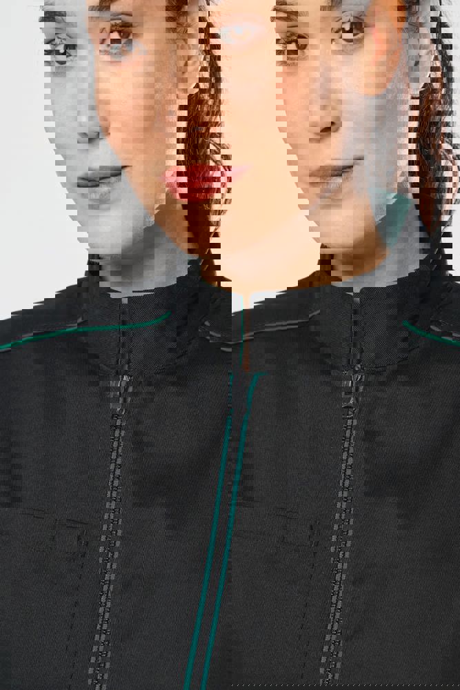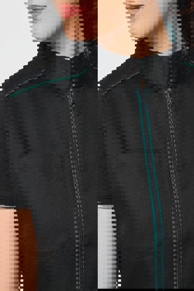 65% polyester / 35% katoen. Wasbaar op 60 °C. 2 ritszakken aan de zijkant. 1 open borstzakje rechts met penhouder. 1 naametiket aan de binnenkant. Ritssluiting op de voorkant en contrasterende zakken. Contrasterende bies op de schouders. Contrasterende binnenkant kraag met ophanglus. 2 ruimtesplitten op de achterkant. Ideaal voor dagelijks gebruik.