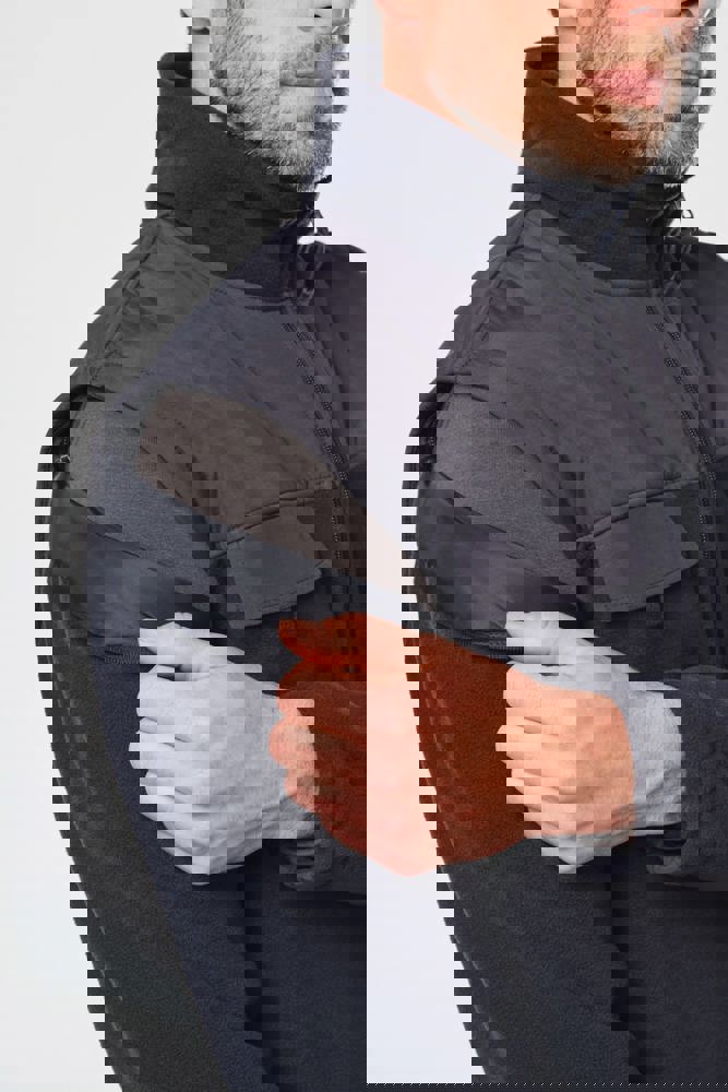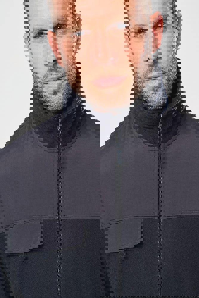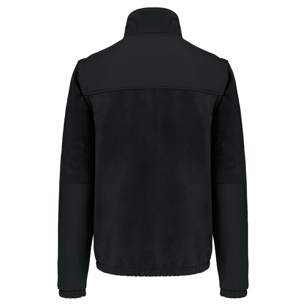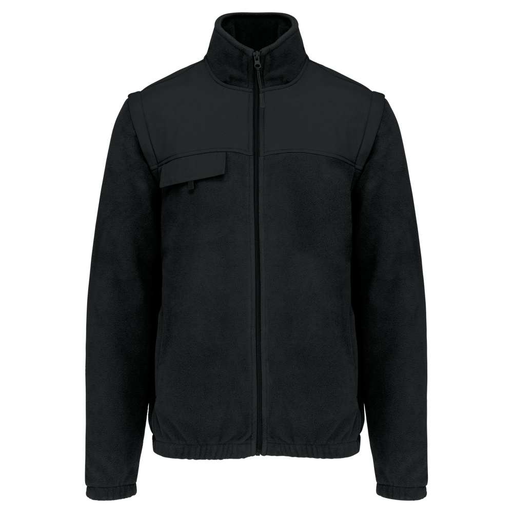 100% polyester. Buitenkant: fleece 100% polyester 400 g/m². Versteviging 100% polyester taslon met acrylcoating. Voering binnenkant mouwen polyester 210T. 2-in-1-fleecejas. 2 ritszakken aan de voorkant en 1 borstzak met klep en klittenband. Toon op toon inzetstukken aan de voor- en achterkant en onderarmen. Eenvoudige personalisatie voor- en achteraan. Afneembare mouwen met voering van polyester, voor meer comfort. Elastische mouw- en jasboorden.