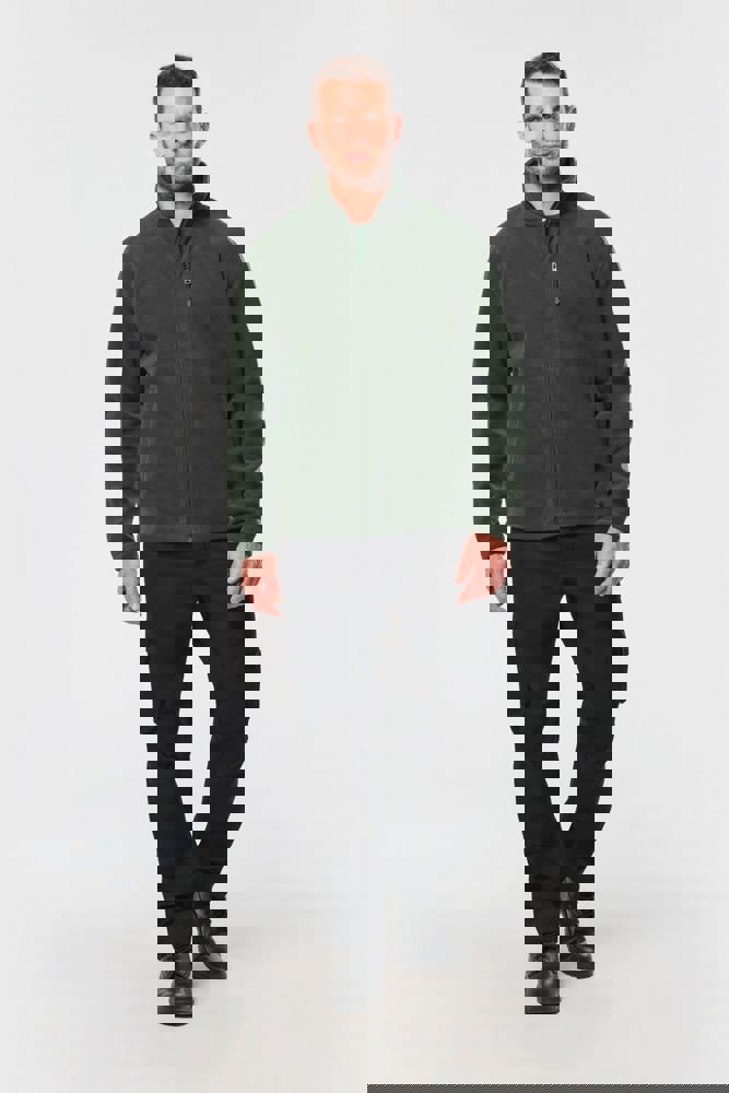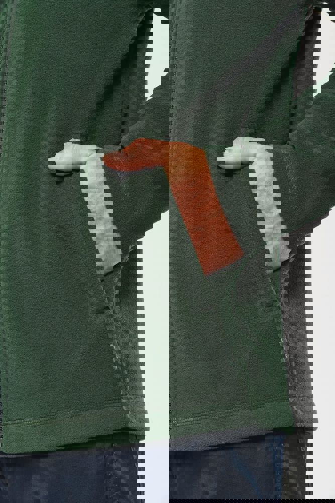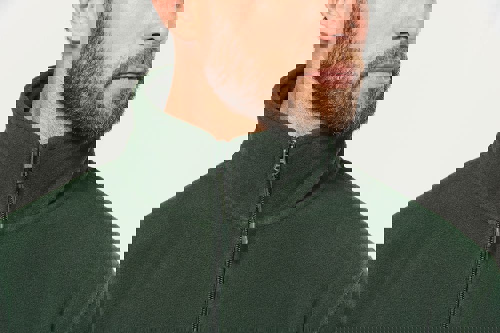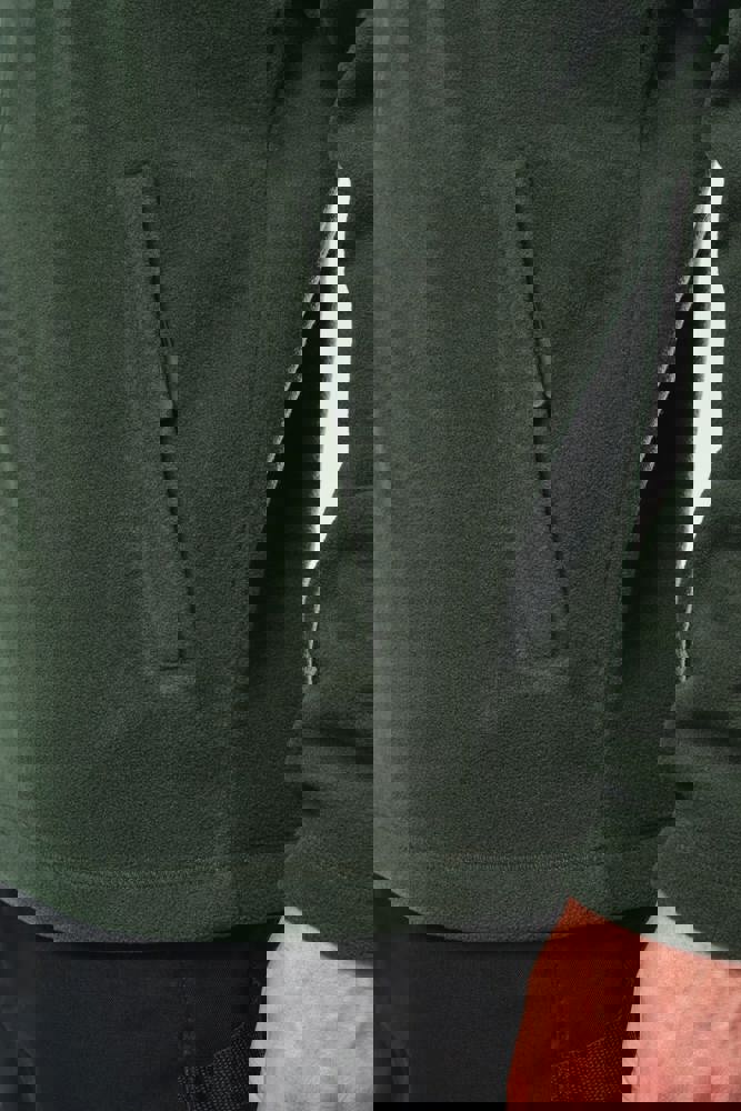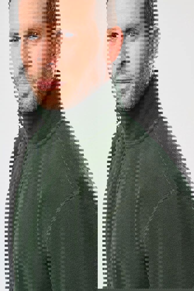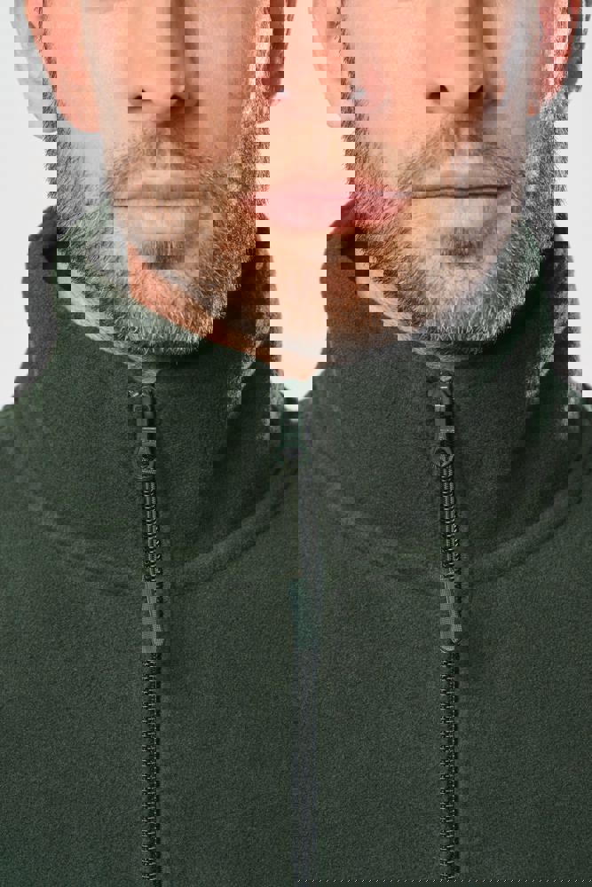 100% polyester. Polyester anti-pilling microfleece. 2 voorzakken met rits.