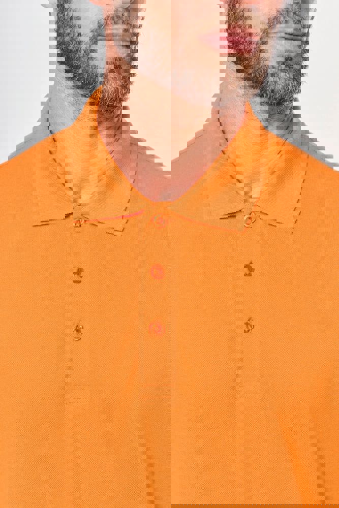 65% polyester / 35% katoen. Gekamd katoen piquétricot. Wasbaar op 60 °C. Anti-bacteriële en anti-pluisbehandeling. Knooplijst met 3 ton-sur-ton knopen . Kraag in ribboord met contrasterend nektape aan de binnenkant. Afwerking in ribboord aan de mouwuiteinden. Zijsplitten met contrasterende bies voor meer comfort. Dubbel stiksel aan de onderkant. Geschikt voor professioneel gebruik.