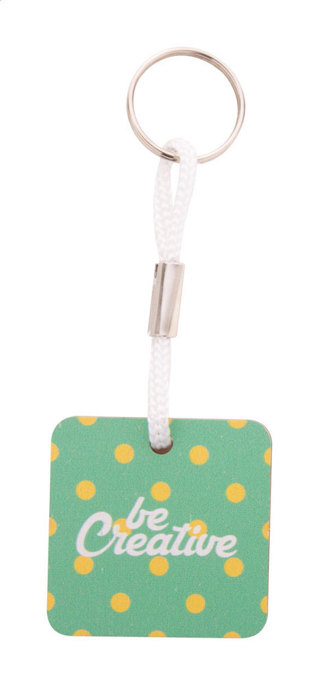 Vierkant gevormde, berken multiplex sleutelhanger met gekleurd polyester koord en full colour...meer