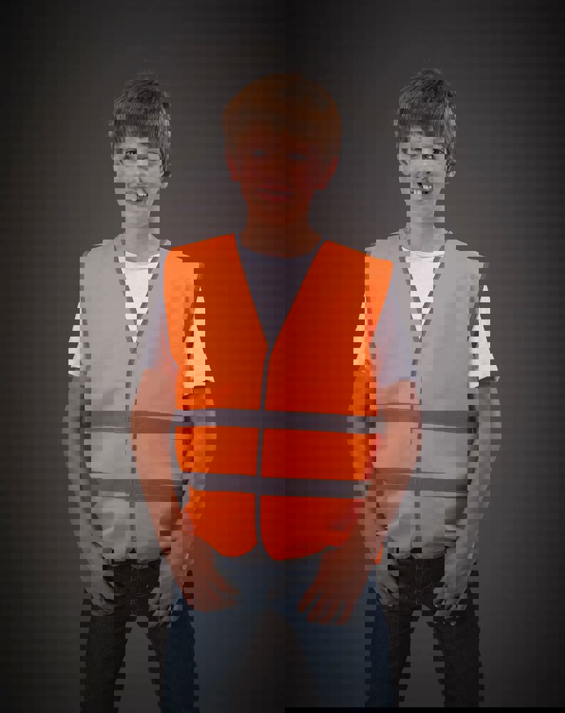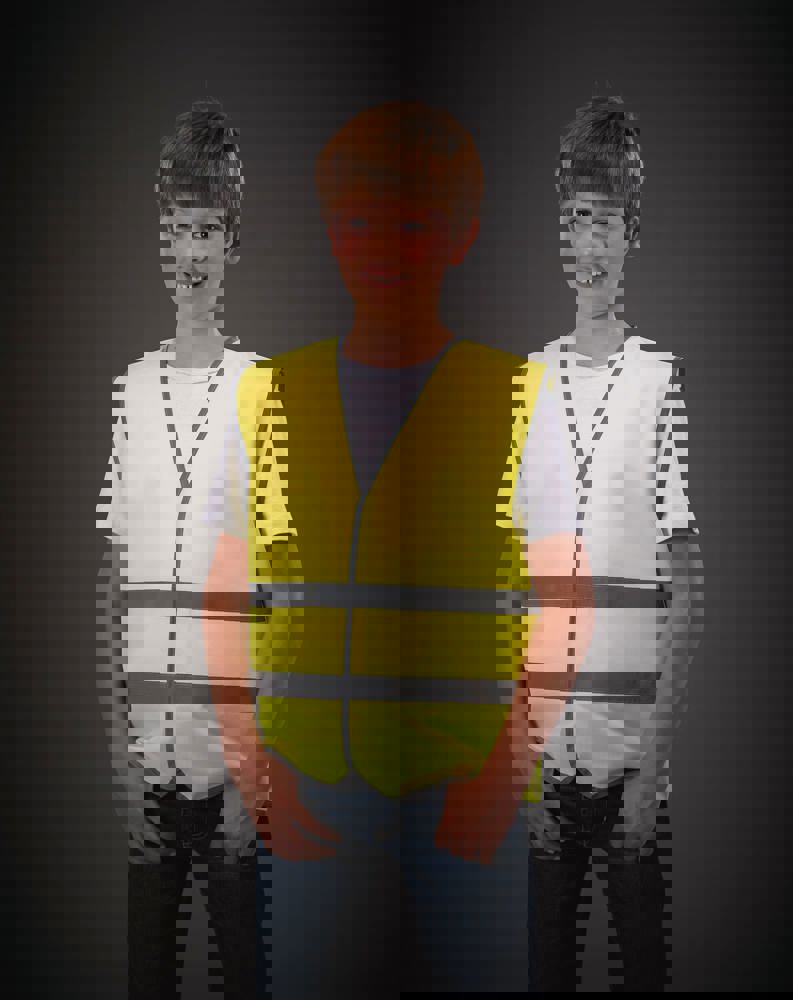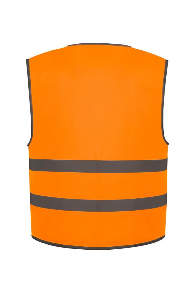 100% polyester. Velcro® sluiting. Twee reflecterende banden van 2,5 cm over het lichaam. Hi Vis Yellow en Hi Vis Orange EN1150:1999.